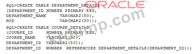 DEPARTMENT_DETAILS 및 COURSE_DETAILS 테이블을 생성하는 데 사용된 명령을 검토합니다.