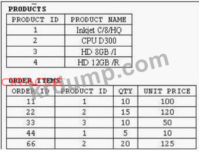 전시회를 보고 PRODUCTS 및 ORDER_ITEMS 테이블을 검토하십시오.