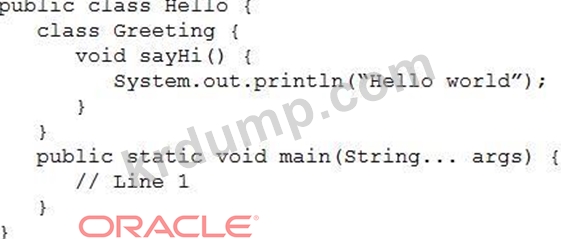 코드가 Hello world를 인쇄할 수 있도록 하려면 1행에 어떤 코드를 삽입해야 합니까?