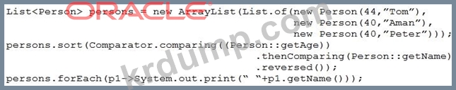 getter 및 setter 메서드와 함께 연령 및 이름이 있는 Person 클래스와 다음 코드 조각이 제공됩니다.
