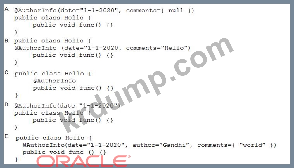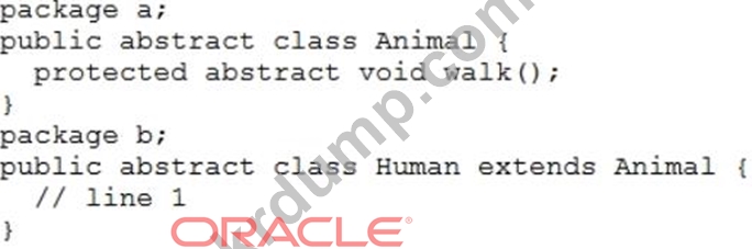1행에 삽입된 두 행 중 이 코드를 컴파일할 수 있는 것은 무엇입니까? (2개를 선택하세요.)