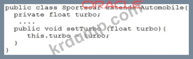 C. Sportscar 서브클래스는 슈퍼클래스 Automobile의 setTurbo 메서드를 재정의할 수 없습니다.