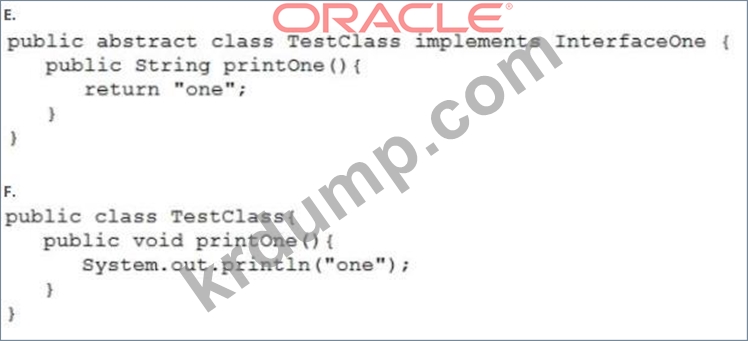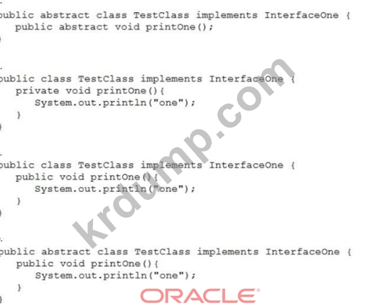 어떤 세 가지 클래스가 printOne()을 성공적으로 재정의합니까? (3개를 선택하세요.)