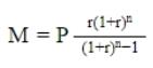 월별 모기지 상환액을 계산하는 공식이 주어지면:
