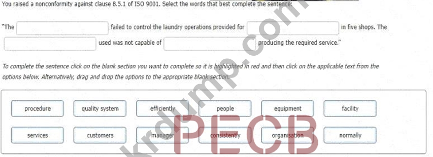 부적합 보고서를 작성하려면 작성하려는 빈 칸을 클릭하여 빨간색으로 강조 표시한 후 아래 옵션에서 해당 텍스트를 클릭하세요. 또는 옵션을 해당 빈 칸으로 끌어다 놓으세요.