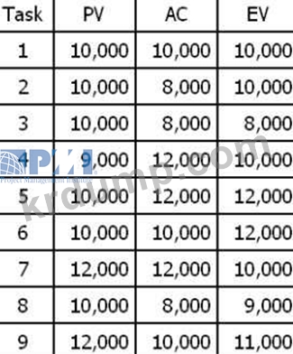 차트를 기준으로 작업 8의 일정 편차(SV)는 얼마입니까?