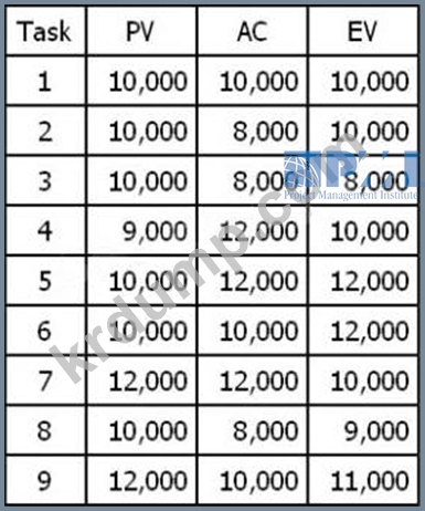 차트를 기준으로 작업 2의 비용 성과 지수(CPI)는 얼마입니까?