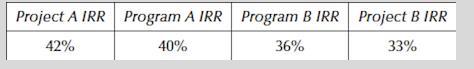 네 가지 가능한 구성 요소 중 포트폴리오를 최적화할 수 있는 요소를 결정하기 위해 작업할 때 내부 수익률을 핵심 기준으로 사용하여 추천한다고 가정합니다. 재정적 제약에 따라 하나의 새 구성 요소만 추가할 수 있습니다. 네 가지 잠재적 구성 요소 각각에는 전략 계획을 지원하는 이점이 있습니다. 다음 데이터를 기반으로 다음을 권장합니다.