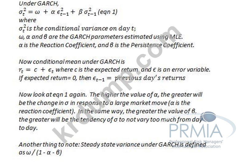 알파가 0.1, 베타가 0.8, 오메가가 0.00025인 GARCH 모델에서 연간 정상 상태 변동성은 얼마입니까?