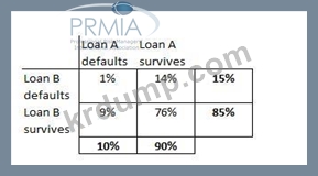 포트폴리오에는 각각 100만 달러의 가치가 있는 두 개의 대출 A와 B가 있습니다. 대출 A의 채무 불이행 확률은 10%이고 대출 B의 채무 불이행 확률은 15%입니다. 두 대출이 함께 부도가 날 확률은 1%입니다. 포트폴리오의 예상 손실을 계산합니다.