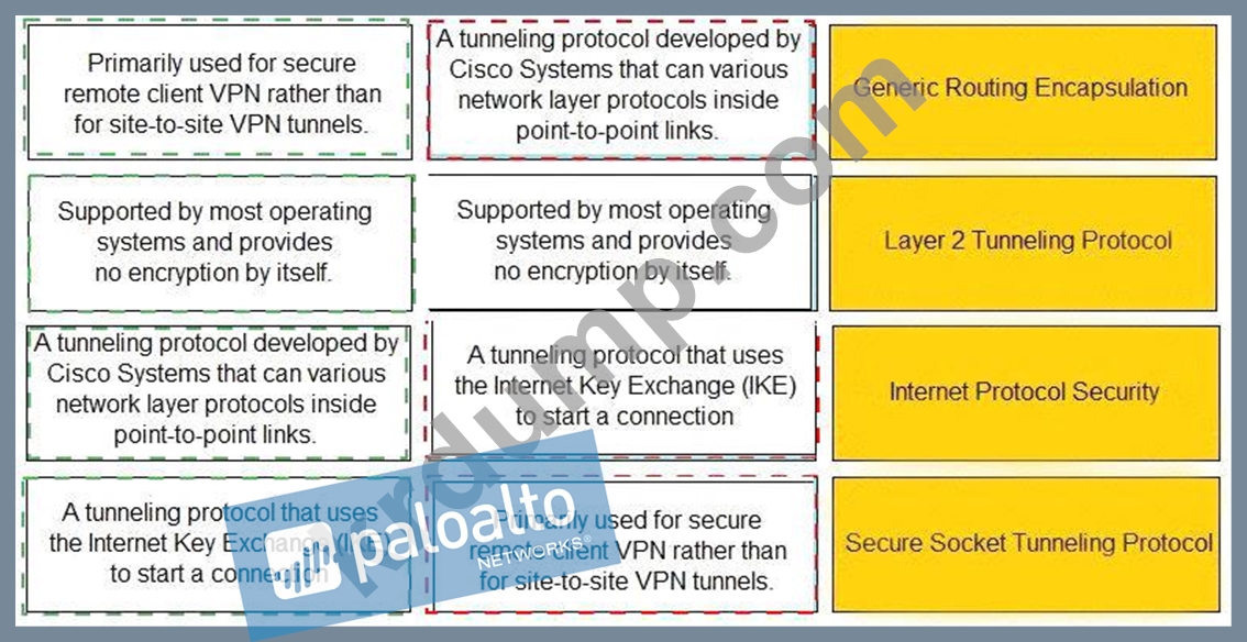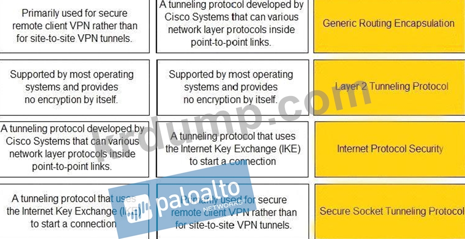 VPN 기술과 설명을 일치시키십시오.