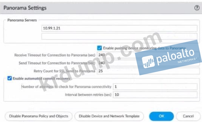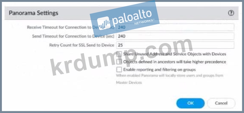 관리자는 Panorama 보고서에서 Palo Alto Networks NGFW의 트래픽 로그를 볼 수 없습니다. 구성 문제가 방화벽에 있는 것 같습니다. 잘못 구성된 경우 어떤 설정이 NGFW에서 Panorama로 전송되는 트래픽 로그만 중지할 가능성이 가장 높습니까?
