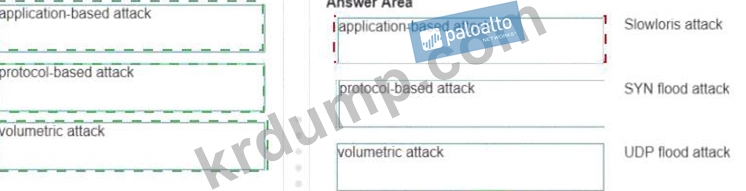 각 유형의 DoS 공격을 해당 공격 유형의 예와 일치시킵니다.