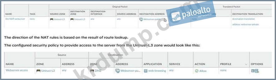 전시회를 참조하십시오. DMZ의 웹 서버는 DNAT를 통해 공용 주소에 매핑됩니다.