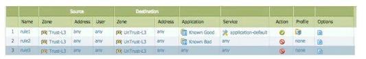 회사에는 나쁜 것으로 분류된 모든 응용 프로그램을 거부하고 좋은 것으로 분류된 응용 프로그램만 허용하는 정책이 있습니다. 방화벽 관리자는 회사 방화벽에 다음과 같은 보안 정책을 만들었습니다.