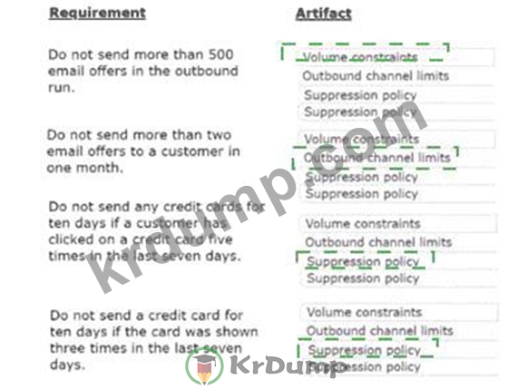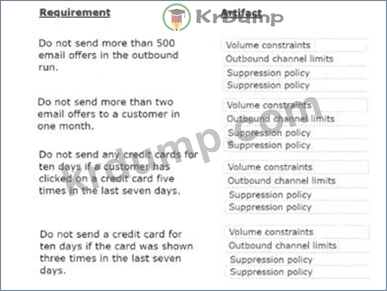 In the Answer Area, select the correct artifact you use to implement each requirement.