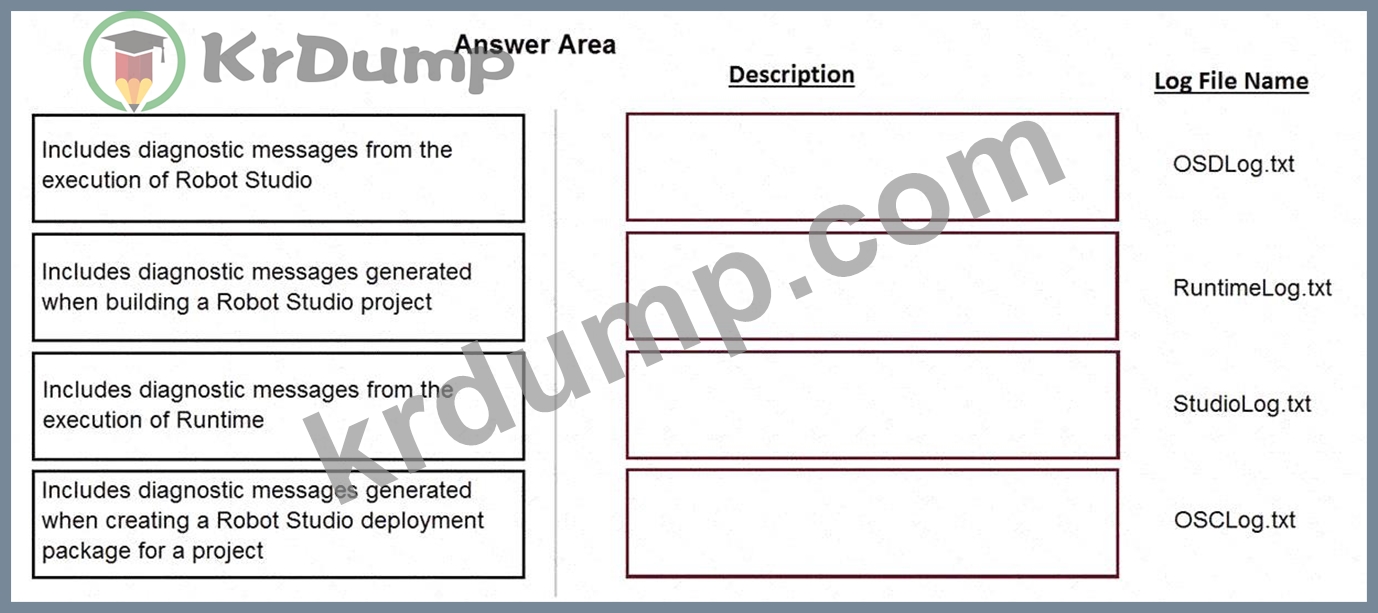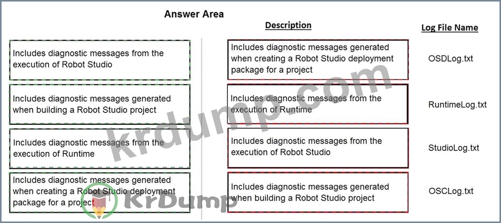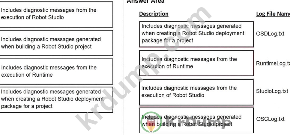 In the Answer Area, drag the description of the log file on the left to its correct log file name.