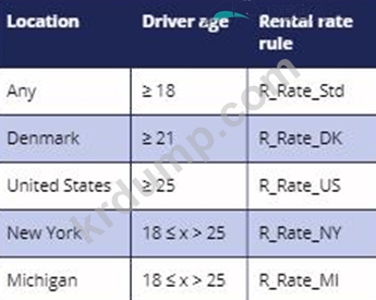 한 회사가 전 세계적으로 출시할 자동차 렌탈 애플리케이션을 만들고 있습니다. 자동차를 렌트하려면 18세 이상이어야 합니다. 18세 이상인 경우 회사의 표준 임대료를 지불합니다.
