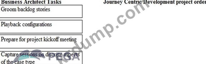 Business Architect 작업을 선택하여 Journey Centric Development 프로젝트 순서 열로 이동하고 올바른 순서로 배치하십시오.