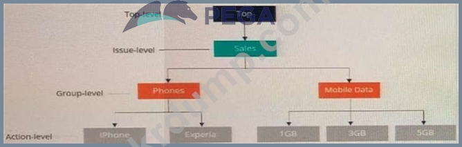 모바일 회사인 MyCo는 Pega Customer Decision Hub를 사용하여 웹사이트에서 고객에게 제안을 표시합니다. 회사는 고객 행동을 기반으로 고객에게 보다 관련성 높은 제안을 제시하고자 합니다. 다음 다이어그램은 Next-Best-Action Designer의 작업 계층 구조입니다.