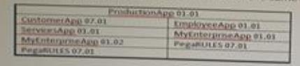 특히, productionapp 애플리케이션은 customerapp 및 employeeapp 애플리케이션을 기반으로 합니다. 이러한 각 응용 프로그램에는 사용 중인 두 가지 다른 버전이 있는 복제된 MYEnterpriseApp 응용 프로그램을 포함하여 추가 기본 제공 응용 프로그램이 있습니다. 모든 응용 프로그램은 동일한 버전의 PegaRUUS를 기반으로 합니다.