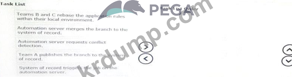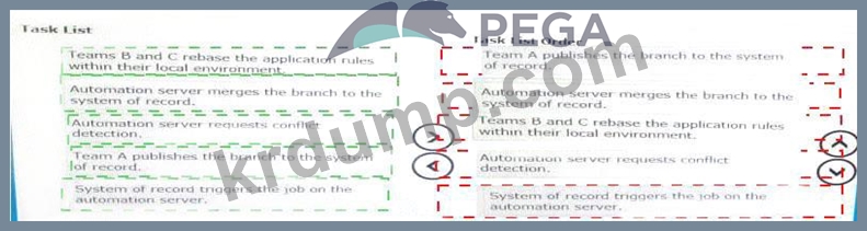 모든 개발 팀이 최신 버전의 공유 룰 베이스로 작업하도록 하려면 다음 태스크를 모두 선택하여 태스크 목록 순서 열로 이동하고 올바른 순서로 배치하십시오.