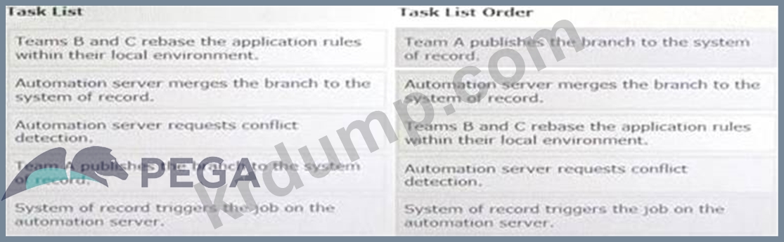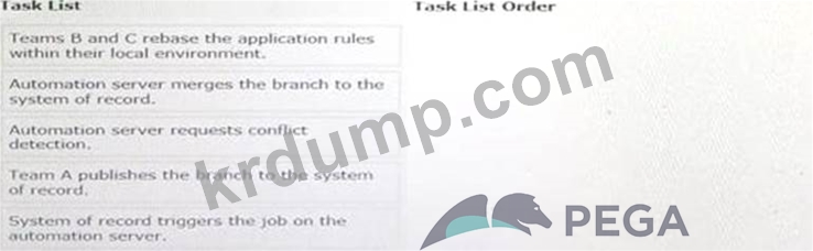모든 개발 팀이 최신 버전의 공유 룰 베이스로 작업하도록 하려면 다음 태스크를 모두 선택하여 태스크 목록 순서 열로 이동하고 올바른 순서로 배치하십시오.