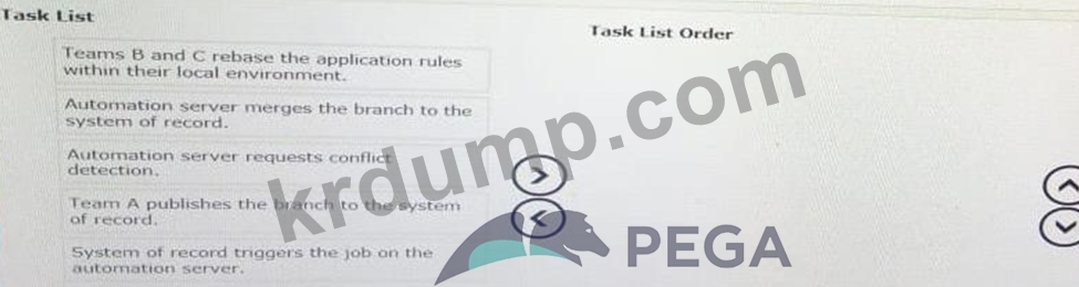모든 개발 팀이 최신 버전의 공유 룰 베이스로 작업하는지 확인하려면 다음 태스크를 모두 선택하여 태스크 목록 순서 열로 이동하고 올바른 순서로 배치하십시오.