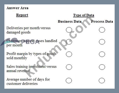 답변 영역에서 각 보고서에서 측정된 데이터 유형을 식별합니다.