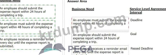 왼쪽에서 각 비즈니스 요구 사항을 선택하고 오른쪽의 적절한 서비스 수준 계약 간격으로 끕니다.