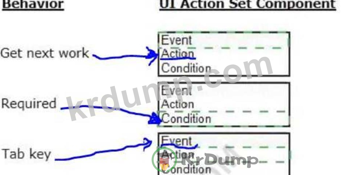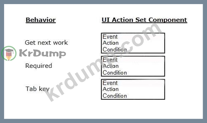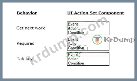 Select the corresponding user interface (UI) action set component for each behavior in the Answer area.
