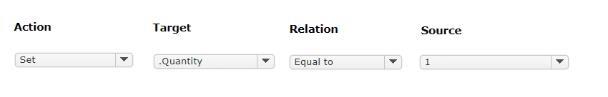 답변 영역에서 구매 요청 사례의 수량 속성 값을 1로 기본 설정하는 데이터 변환 구성을 선택합니다.