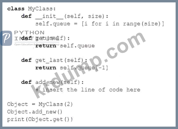 스니펫의 출력을 [0, 1, 1]과 같게 만들기 위해 add_new() 메서드 내부에서 독립적으로 무엇을 합니까? (2개 답변 선택)