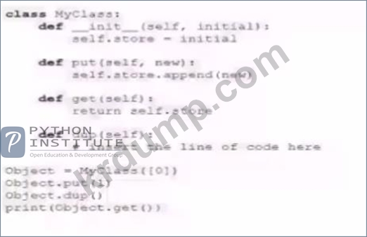 다음 중 코드 조각의 출력을 [0, 1, 1]과 같게 만들기 위해 add_new() 메서드 내부에 독립적으로 넣을 때 완벽하게 작동하는 코드 줄은 무엇입니까? (2개 답변 선택)