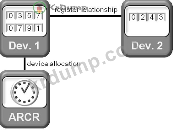 In the attached image you can see a double-rate meter (Dev. 1), controlled by a ripple control receiver (ARCR). One of the registers in Dev. 1 has a relationship with a register in another meter (Dev. 2). Consumption in Dev. 2 is automatically deducted from consumption in the main register in Dev. 1 during the billing run.