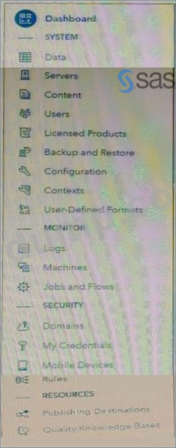 (**참고: 이것은 대화형 항목입니다. 질문에 답하려면 지침을 따르십시오 창이 너무 작은 경우 스크롤 막대가 나타날 수 있습니다. 전시회의 아무 곳이나 클릭할 수 있습니다. 선택한 답변에 더하기 기호(+)가 표시됩니다. 다음을 수행할 수 있습니다. 답을 변경하려면 더하기 기호를 재배치하십시오.) 사용자의 실행 중인 CAS 세션 상태를 확인하는 데 사용할 SAS Environment Manager 응용 프로그램 메뉴의 기능을 클릭하시겠습니까?