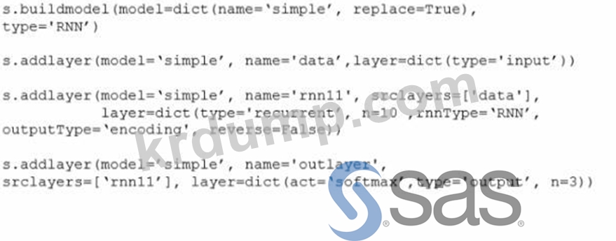 CASL 및 Python 탭에서 코드 검토 코드 세트는 동일하지만 다른 언어로 되어 있습니다. 이 코드가 주어지면 코드 세트1에 의해 구축된 이 순환 신경망을 올바르게 설명하는 문장은 무엇입니까?