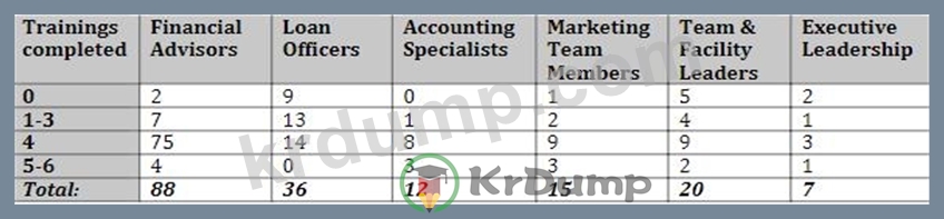 조직 기능별로 교육 시리즈에 참여한 직원 수를 자세히 나타낸 아래 표를 살펴보세요.