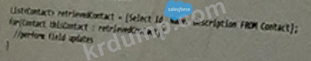 클래스 구현의 일부로 개발자는 연락처 개체를 기반으로 하는 대규모 데이터 서버에 대해 SOQL 쿼리를 실행해야 합니다. 메소드 구현은 다음과 같다.