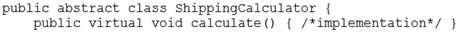 개발자는 인스턴스화할 수 없는 ShippingCalculator 클래스를 생성해야 하며 하위 클래스가 재정의할 수 있는 계산 메서드의 작동 기본 구현을 포함해야 합니다.