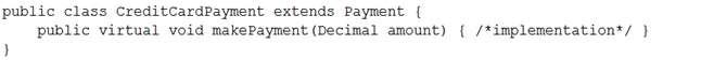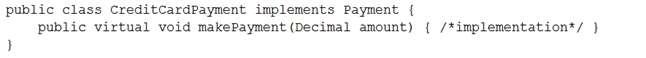 개발자는 기존 Paymentclass의 구현을 제공하는 CreditCardPaymentclass를 생성해야 합니다.