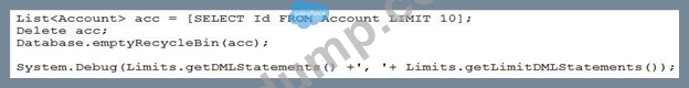 Apex 트랜잭션은 500개의 기회 레코드를 삽입하려고 할 때 DML 예외가 발생하기 전에 100개의 계정 레코드와 2,000개의 연락처 레코드를 삽입합니다. 계정 레코드는 allOrNone 인수가 false로 설정된 database.insert() 메서드를 호출하여 삽입됩니다. Contact 및 Opportunity 레코드는 독립형 insert 문을 사용하여 삽입됩니다. 이 트랜잭션에서 데이터베이스에 커밋될 총 레코드 수는 몇 개입니까?