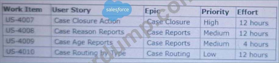 프로젝트 관리자는 나머지 작업 항목의 우선 순위를 정하기 위해 비즈니스 분석가(BA)의 도움을 요청했습니다. 개발팀의 남은 용량은 16시간이며 최대한 빠른 시일 내에 고객 서비스 솔루션의 MVP(Minimum Viable Product)를 출시하는 데 집중하고 있습니다.