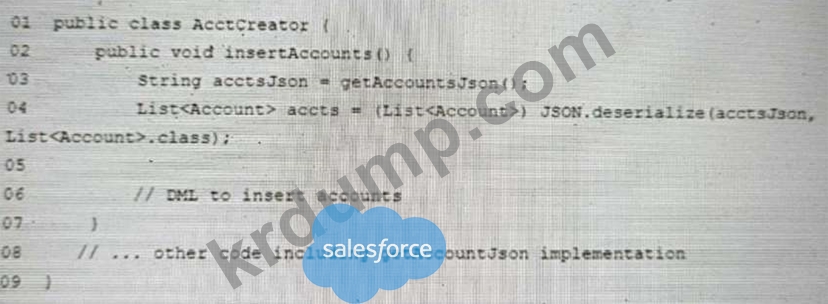 개발자가 계정 개체에 대한 트리거를 만들고 트리거가 제대로 bulklfield인지 테스트하려고 합니다. 개발자 팀은 고유한 이름을 가진 200개의 계정 레코드로 트리거를 테스트해야 한다고 결정했습니다.