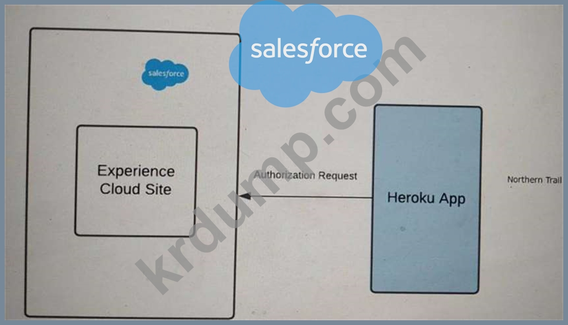 Outfitters(NTO)는 Heroku의 애플리케이션에 대한 ID로 Experience Cloud를 사용하고 있습니다. Heroku의 애플리케이션은 Northern Trail Shoes와 Northern Trail Shirts의 두 브랜드를 처리할 수 있어야 합니다.