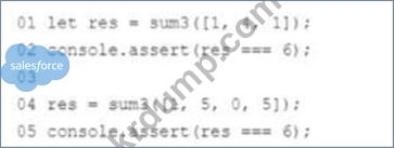 개발자는 숫자 배열을 받아서 배열의 처음 세 숫자의 합을 반환하는 sum3 함수를 테스트하기 위해 다음 코드를 작성했고, 테스트는 통과했습니다.