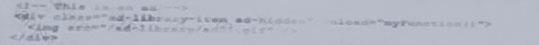 모든 요소에는 동일한 ad-library-item 클래스가 포함되어 있으며, 기본적으로 숨겨져 있으며 사용자가 페이지를 탐색하는 동안 무작위로 표시됩니다.