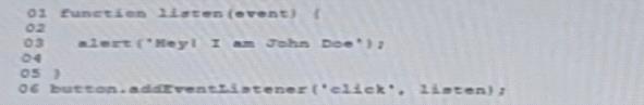개발자가 아래 JavaScript 코드를 작성했지만, 뭔가 누락된 부분이 있습니다. 메시지는 사용자가 버튼을 처음 클릭할 때만 표시되는 것이 아니라, 클릭할 때마다 표시됩니다.