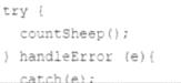개발자는 countSheep()에서 발생할 수 있는 오류를 catch하고 handleError() 함수에 전달하기 위해 try...catch 문을 사용하려고 합니다.