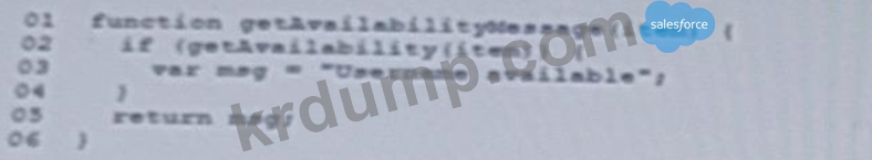 개발자는 새 사용자 이름을 등록하려는 사용자에게 메시지를 반환하는 코드를 작성합니다. 사용자 이름이 사용 가능한 경우, 3번째 줄에서 msg라는 변수를 선언하고 값을 할당합니다.